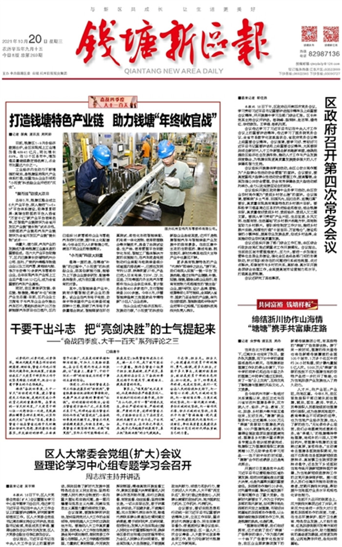 打造錢塘特色產(chǎn)業(yè)鏈 助力錢塘“年終收官戰(zhàn)”